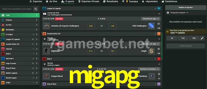 A aposta migapg oferece aos jogadores a experiência mais conveniente de apostas em eSports!